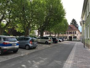 Der an den Graben zur Altstadt hin angrenzende Park am Landratsamt war vorher eine schlichte, nicht einsehbare Grünfläche, die keine Aufenthaltsqualitäten hatte. Durch die Reduzierung der Mauerhöhe am Graben, Verbreiterung des Zugangs am Graben und der Maueröffnung zur Kellereigasse konnten vielfältige Sichtbeziehungen hergestellt werden. Damit kommen die angrenzenden Gebäude und die ehemaligen Stadtmauerreste nun stärker zur Geltung. Durch eine zurückhaltende, aber strukturierte Gestaltung der Pflanzflächen wurde die Attraktivität dieser Flächen deutlich erhöht und die Aufenthaltsqualität verbessert.